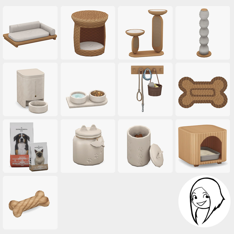 For Sims who believe their decor should stay flawless and their pets should stay fabulous, All Hail Fluffiness is here to serve the furry royalty of the household. This set brings chic pet living to a whole new level: think elegant stone auto-feeders, stylish dual-use bowls, and tasteful decor that whispers, “Yes, a pet lives here, but we have standards.”