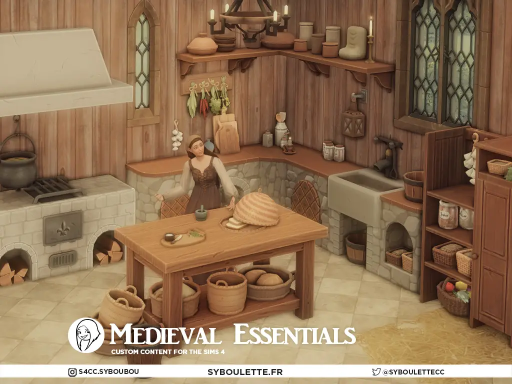 This medieval essentials cc sims 4 includes 28 items: