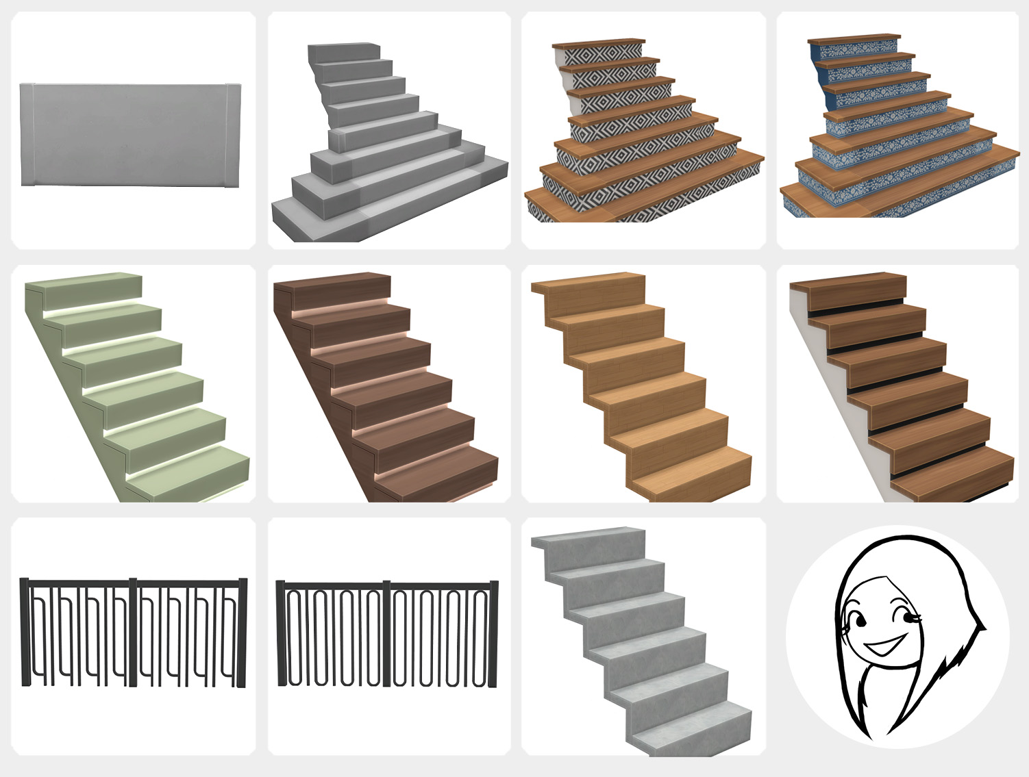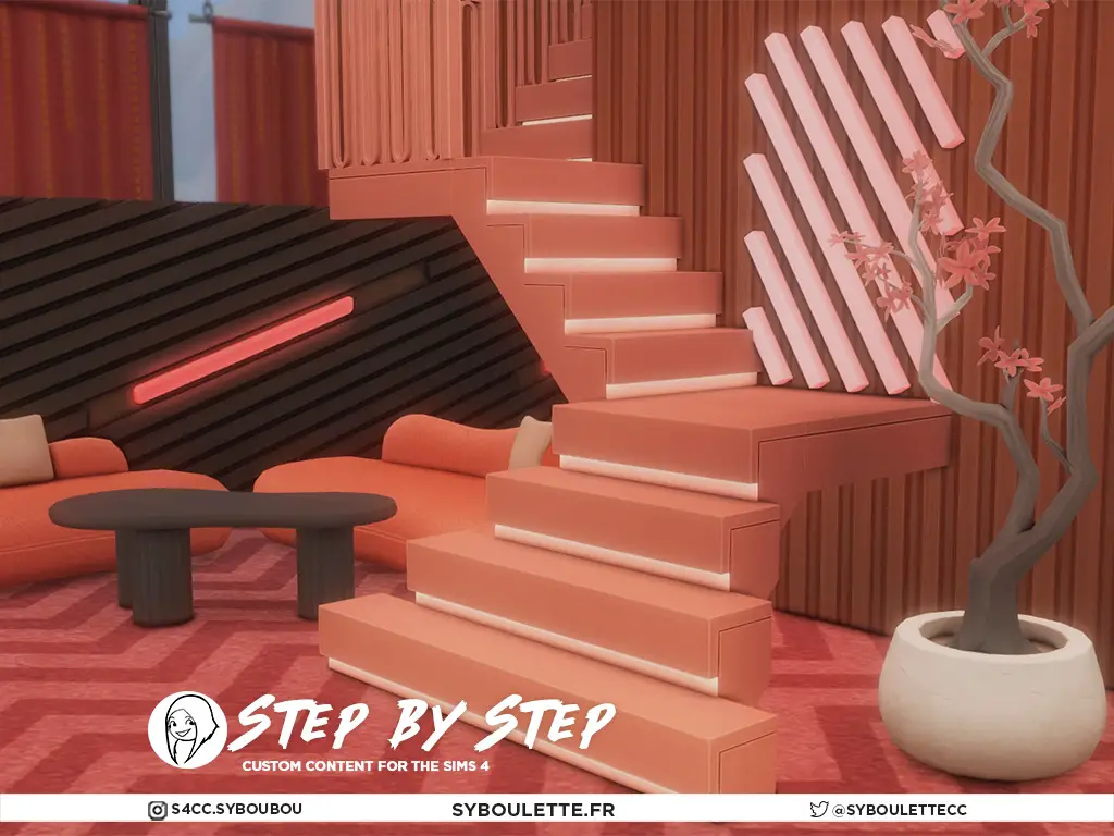 - 8 new staircases – including 2 inspired by/complete remakes of the Minimalist stairs from my old Paradis Set, now fixed and retextured properly and 2 staircases with LED lights (like the ones from the Famous DLC but better looking)